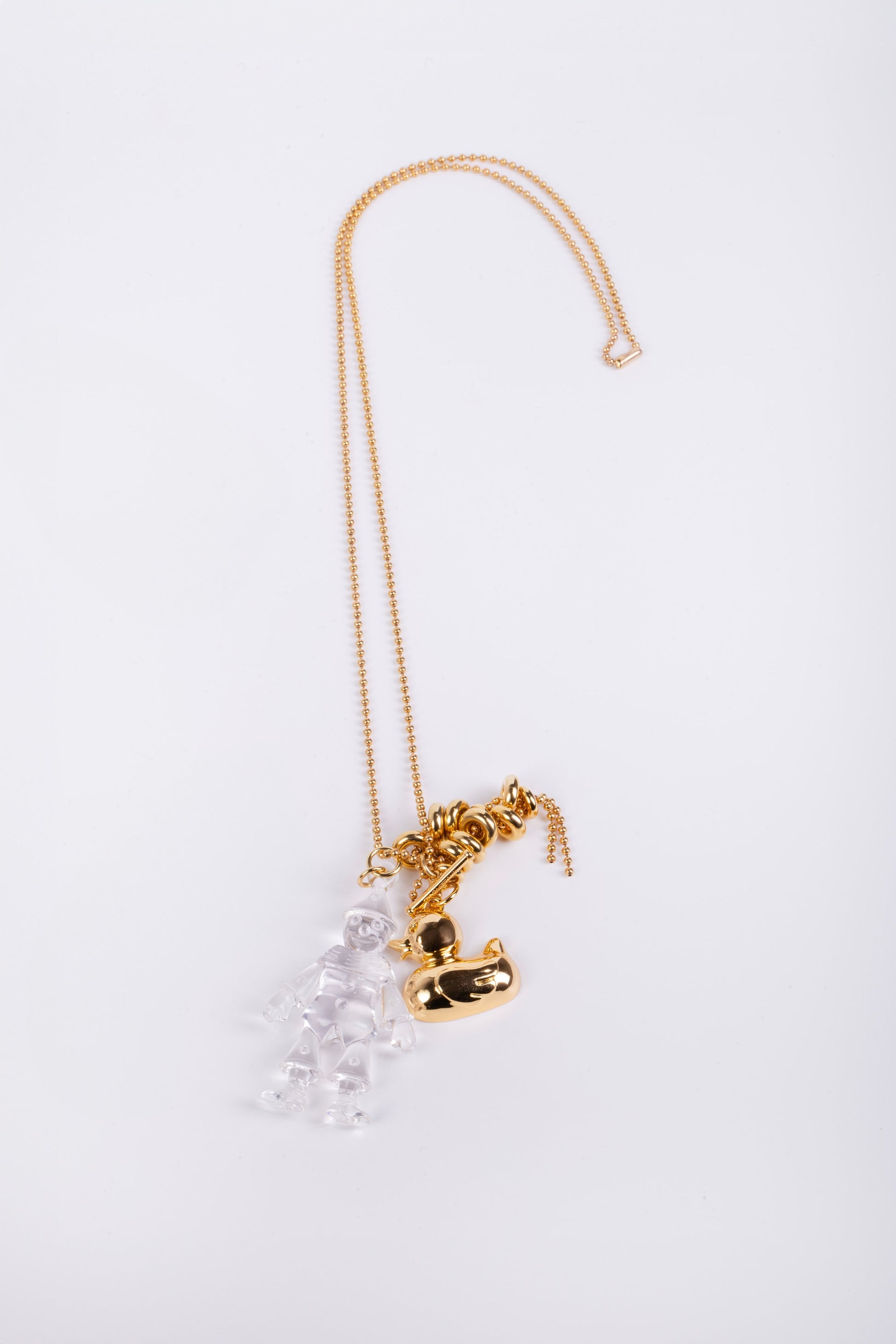 Chain necklace with gold duck charm and transparent Pinocchio