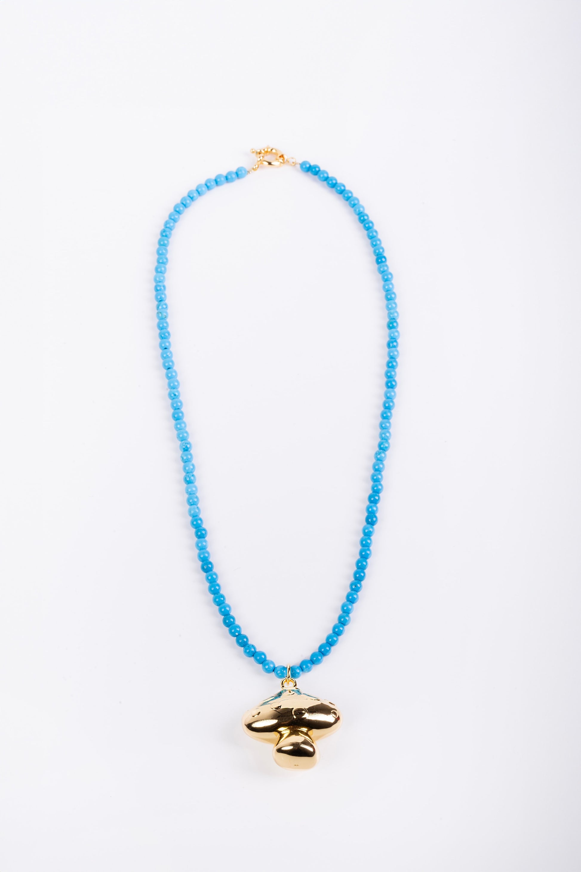 Necklace with blue beads and mushroom charm