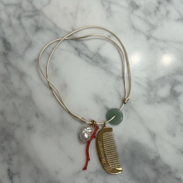 Gold plated comb, coral, turquoise donut and a dream